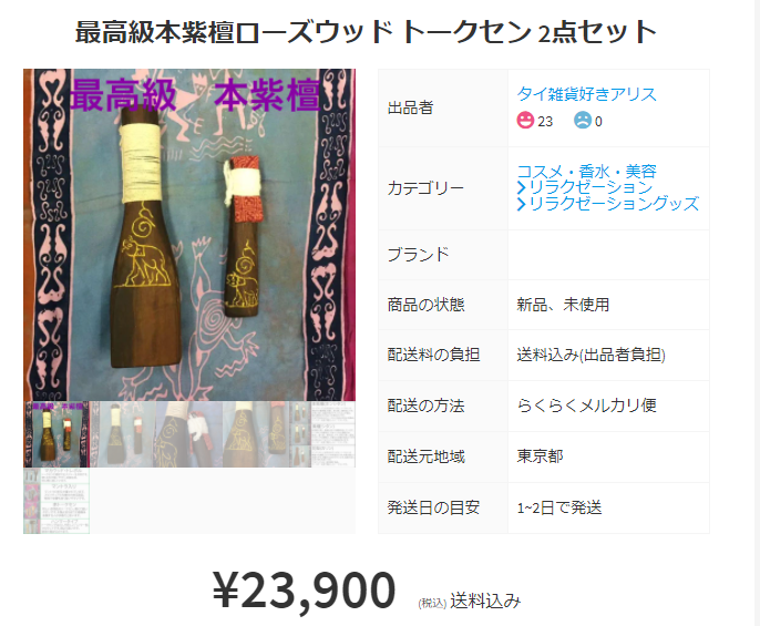 メルカリで素材が分かる中では最高級の本紫檀トークセン。